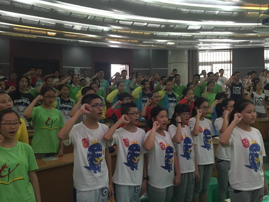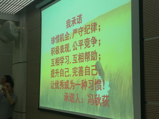 最后,同学们一起用最响亮、最坚定的声音做出了最庄严的承诺:让优秀成为一种习惯。而在场的六位老师就是我们承诺的见证者,他们将会督促着我们对自己负责、对班级的荣耀负责。