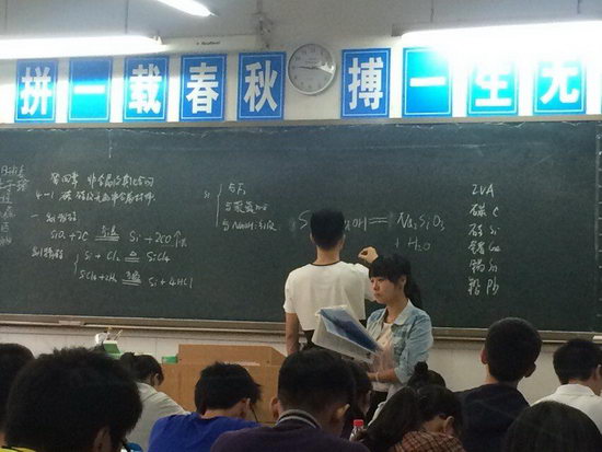 2015年9月27日,化学组在组长李光亮的带领下,全组老师到CBD高三校区慰问、指导高三化学教学工作。