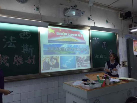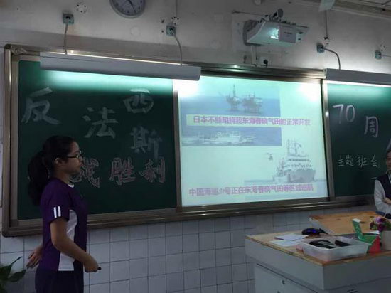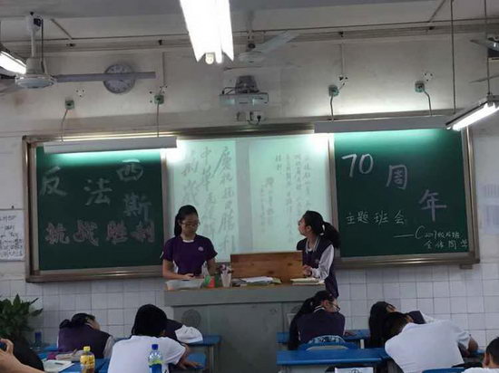 9月28日下午,初2017级14班召开 “反法西斯抗战胜利70周年”主题班会。班会活动正式开始,两个主持人自信大方上场,把我们带进了七十八年前的那场浩劫中。看着屏幕上惊心的数字,一场抗日战争,牺牲了3500万中华儿女,损失了数以亿万计的钱财,让中国陷入了前所未有的灾难中。历史图片真实地记载了日本军队在中国的广袤土地上所犯下的滔天罪行,如杀人比赛、活埋中国人等,层出不穷。一张张黑白照片,见证着历史,重现了当时惨无人道的杀戮。