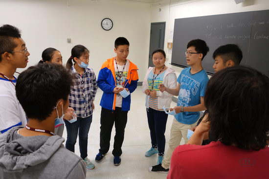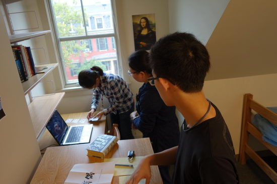 下午我们进行了同学们最喜爱的游戏之一:密室逃脱。面对一个中文都不会讲的美国同学,如何沟通、如何协作成为同学们最大的一个挑战。
