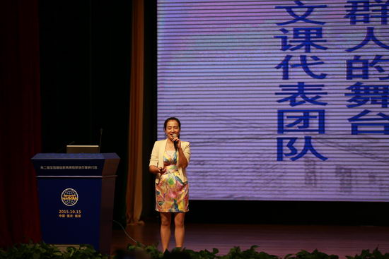 会议议程第二项为分校展示特色项目。重庆市十一中语文教研组教师代表以“读行天下”为题,做了关于“大阅读”的详细报告。展示会由十一中毛阿英老师主持,分为丛书推荐、课程总论、个例展示、学校改革、成果汇演几个部分。