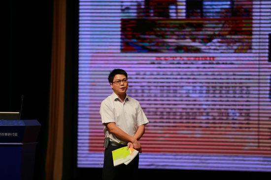 一边是沉甸甸的果实,一边是辛勤的耕耘者。重庆十一中语文教研组组长傅文霄老师详细解读了“大阅读”的课程目标、课程体系、课程实施及改革后的考试评价和教师评价体系。为了让观众更直接的了解“大阅读”课程的实践情况,张俊、刘东华两位老师在现场展示了真实的教学过程。