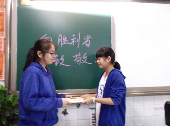 10月28日,初2017级13班开展了一场以“向胜利者致敬”为主题的班会。这次班会我班筹备许久,早在两月前,我班46人自由地分成11个学习共同体,每次考试成绩在共同体中相比较,胜者为“王”。