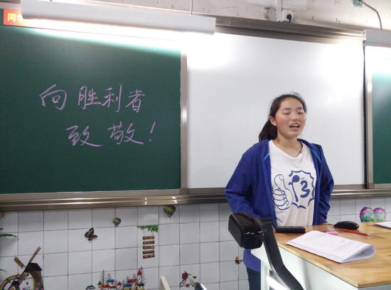 大家的掌声迎接着每个胜利者走向讲台,他们昂首阔步,充满自豪。他们这次成功,不是因为他们有着多高的智慧,而是因为他们是学习最努力的人。