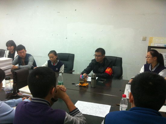 会议分为三个议程。黄组长首先向新上任的班级学生干部致以衷心的祝贺,然后分别从三个方面对学生干部的工作提出了要求:一、树立一个意识,明确自己在集体里应担当的职责。二、培养一种精神,作为班级学生干部,必须树立为班级服务和奉献的精神,这不仅是职责所需,更是所有学子应树立的正确人生观价值观。三、处理一组关系,作为学生干部,应起好班主任和同学之间的桥梁作用,协调老师管理,做到诚实守信、不卑不亢;同时他特别强调了教学日志的填写方法。会议的最后,黄组长代表年级和班主任老师对学生干部们提出了两个殷切的希望:希望他们能为班级积极贡献自己的力量,竭尽所能促进班级的发展;希望他们“学有所获,学有所得,学有所成”。