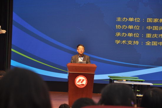 暮秋巴渝,丹桂飘香。阅名家篇章,品华夏滥觞。11月13日上午,全国中学语文文学作品教学研讨会暨重庆市十一中学大阅读教学交流会于重庆市第十一中学校文益堂拉开帷幕。本次会议由国家教师科研基金、“十二五”重点课题大语文课题组主办,中国阅读研究会协办,重庆市第十一中校承办,并获得全国中语专委会的学术支持。著名作家、散文家、诗人、全国政协委员、中国作家协会全委会委员、中国散文学会副会长赵丽宏,著名作家、北京市作家协会副主席刘庆邦,“大语文教育”课题组秘书长忻龙会,语文特级教师黄厚江,著名语文特级教师、北京大学附属中学副校长程翔,重庆市第十一中学校党委书记、校长钟进友以及广大一线人民教师出席了本次会议。此次会议为期两天,以文学作品的阅读与鉴赏为主题,以专家报告、名师示范、作家解读等为主要形式展开一系列活动,旨在对文学作品的阅读与鉴赏教学进行多角度研讨。