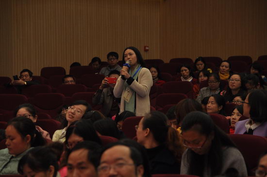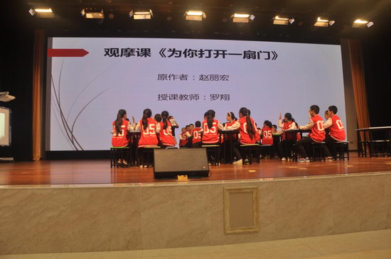 课后是专家点评。著名作家赵丽宏老师肯定并高度赞扬罗翔老师对《为你打开一扇门》的解读,他指出语文老师最重要的事情不是把文章剖析得多么细致,而是应该引领学生往高处走。赵老师认为好的文章就如一只美丽的鸟儿,当今很多语文老师不是在描绘鸟儿的羽毛多么美丽,飞翔得多么自由,而是去解剖它,肢解它。他对罗老师没有肢解这篇文章感到欣慰、欣喜,对罗老师为学生打开一扇读书的门表示感谢。随后,赵老师阐释了自己作《为你打开一扇门》这篇文章的缘由,现在的孩子读书的欲望越来越小,希望推荐更多的书给孩子们。赵老师以自己教导孩子的经历来阐释孩子们多读书的重要性,并以他和英国小说家交谈的例子来告诫大家不要做“高学历的野蛮人”,因为阅读才能够让人感性,让人有温度。赵老师结合自身读书经历,鼓励大家多读书,读好书,用读书幸福自己,睿智人生。希望与会的语文老师们多引领孩子们亲近文字,感受文学的魅力。