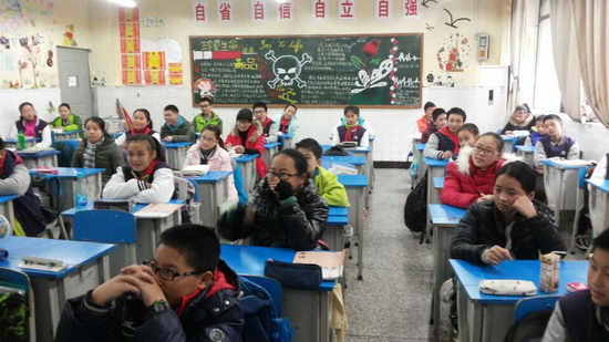 同学们认真听讲中