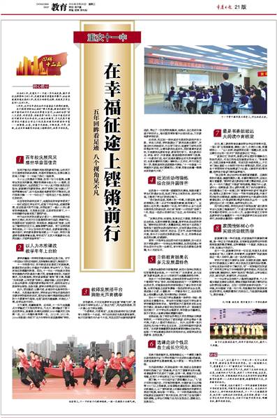 过去的5年,是重庆十一中进一步内涵发展、提升学校品牌影响力的5年;是教育教学质量连年攀升、社会满意度持续走高的5年;更是打响特色品牌、成就更多学生美好人生的5年。