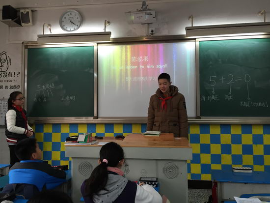 班会中还穿插了“你问我答”的游戏环节,由主持人提出问题,被答的同学要答出在PPT中出现过的答案,答错的同学要模仿PPT中的猫头鹰和奶牛作为惩罚。结果答错的同学的“模仿秀”让大家捧腹大笑,刚开始的紧张一扫而光,加深了对科学复习法的记忆同时又舒缓了大家的情绪。