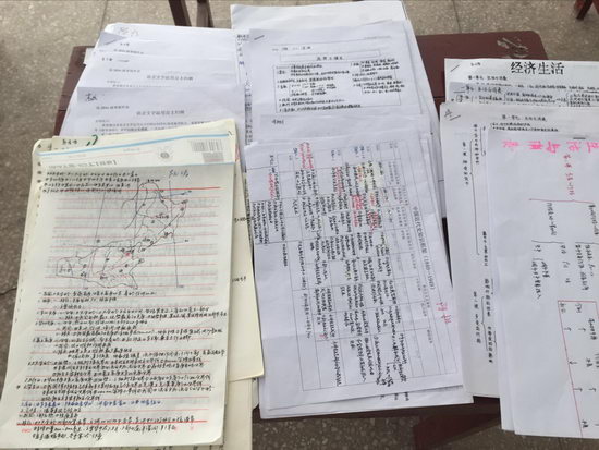 在十一中CBD校区,四列小桌两两并排而列,同学们精心总结的寒假作业陈列其上,每一份作业虽方法不同,但都包含了十一学子的用心认真,展现了高三学生对于知识点的准确把握和对知识体系的自主构建。