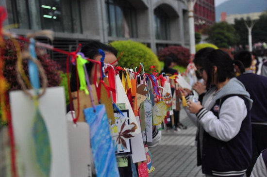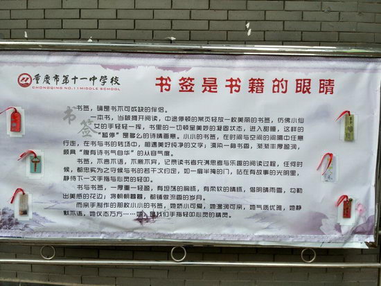 2016年3月21日,重庆市第十一中学校第三届大阅读活动书笺展览正式开幕,经过全校师生为时两周的精心筹备,校内各地充盈着各式各样的书笺。