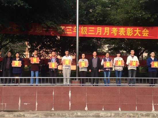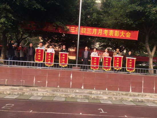 为了更好总结过去,展望未来,表彰优秀,鼓励先进,2016年3月28日上午8时40分,重庆十一中高三年级全体师生在运动场整齐列队,举行主题为“光荣与梦想”的三月月考表彰大会。