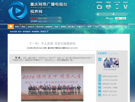 近日,重庆市第十一中学校2016“读行天下 阅历人生”第三届大阅读活动节启动仪式在十一中操场上举行。朗朗的读书声飘扬于十一中的天空之上,校园书墨飘香每一隅。