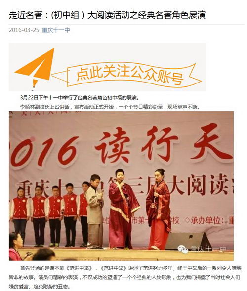 [重庆十一中 微信]走近名著:(初中)大阅读活动之经典名著角色展演