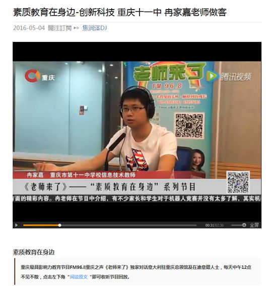 重庆市十一中学校 信息技术教师 机器人竞赛教练 冉家嘉