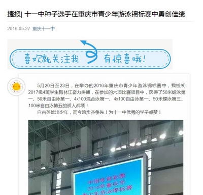 [重庆十一中 微信] 十一中种子选手在重庆市青少年游泳锦标赛中勇创佳绩