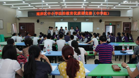 为深入贯彻党的十八届四中、五中全会关于依法治国精神,全面落实依法治校、依法治教的要求,进一步推动法治教育“进学校、进课堂、进师生”,为全区中小学法治教育教学提供展示交流平台,促进法治教育理念和教育教学方式更新和发展。南岸区教委、南岸区人民法院联合开展的南岸区中小学首届法治教育课于6月21日在重庆市第十一中学校隆重举行。