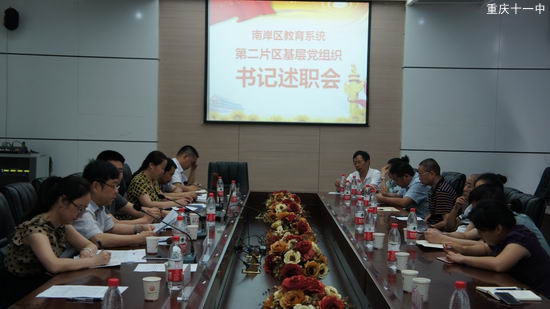 2016年6月23日上午,区教委第二片区落实全面从严治党责任述职报告会在重庆十一中体艺馆负一楼圆桌会议室召开,会议由南岸区教委人事科科长骆芳同志主持,南岸区教育工委副书记龙晓梅出席会议并做了总结点评。中共南岸区东港学校党支部书记康肇军、中共重庆电大南岸分校支部书记刘渝宁、中共重庆市南岸区铜南学区支部书记江洋分别作了述职报告。东港学校、天台岗小学、天台岗融创小学、兴隆湾小学、野猫溪小学、电大南岸分校、金科十一中的党组织负责人及学校负责人,以及各学校的党员代表、群众代表共27人参加了会议。
