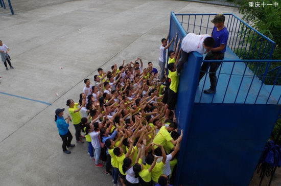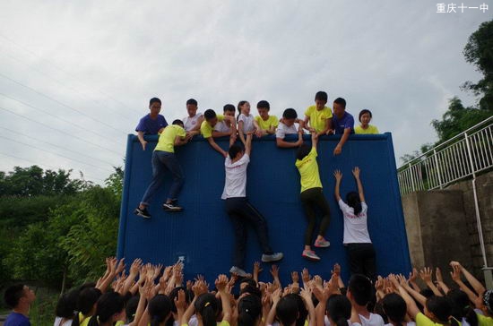 7月1日,高2019级两个衔接班的同学来到合川,在邮电大学移通学院进行课外拓展训练。同学们首先分为赤焰队、Hunter猎人队第五小队,并完成了队名、队歌、口号与队旗的创作。在这一天当中,同学们陆续进行了“蛟龙入海”“创越时空”“海难逃生墙”等项目,每个项目都充分体现了齐心协力的力量、坚持不懈的精神,其中“海难逃生墙”尤其体现了同学们身为十一中人所具有的坚强意志。