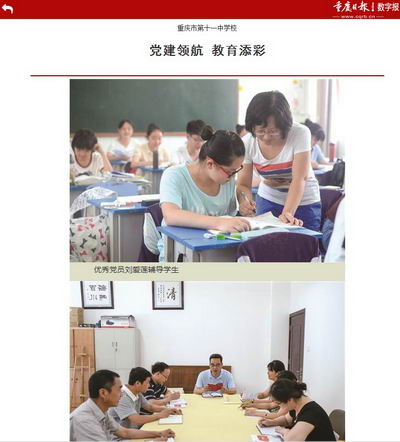 同时,十一中建立了全校教职工QQ群,党委还专门建立了“重庆十一中党务工作群”,在党组织和党员之间、党员和群众之间建立起一座互相沟通的桥梁。十一中各个党支部、党小组在学习教育中也结合自身实际,积极通过微信公众号、微信群介绍经验做法。党员教师将看到的好文章、好观点等发到网站中,营造起全员学习的浓厚氛围。