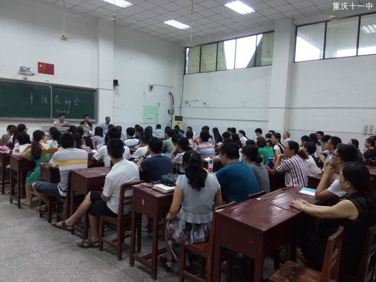 2016年8月27日上午,重庆市第十一中学校高2018级新学年年级教师大会在博文楼505教室顺利举行。会议由年级组长黄伟老师主持,年级主任许刚强老师对新学年的工作作了部署。