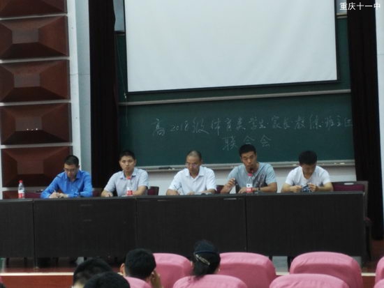 2016年9月10日,重庆十一中“高2018级体育类学生、家长、教练、班主任联合会”在博文楼科技报告厅举行。本次会议由高2018级年级组长黄伟老师主持,年级主任许刚强老师、年级组长徐顺光老师、体育教练徐夏平、颜飞飞老师出席,所有体育类学生、家长及相应的班主任参加。