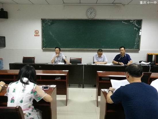 9月12日,晚7点整,重庆十一中CBD校区,夜幕已然降临,高三学子们早已端坐于教室安静自习,回顾整理着白天的所学知识。工作了一天的高三全体教师此时也齐聚CBD校区一楼考务办公室,参加高2017级新学期首次年级会议,组织本次会议的年级领导有艾林主任、马凯组长、刘世军组长以及童国福老师,还有百忙之中赶来的学校领导李顺林校长。