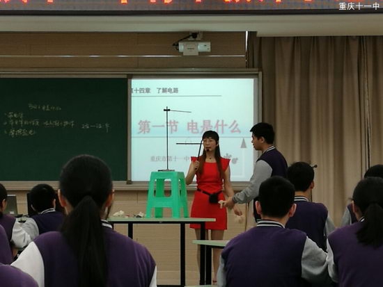 “摩擦,摩擦,在光滑的地面上摩擦……”在一首轻快的歌声中一场粘气球的游戏开始了,学生们把生活经验带到课堂上依靠摩擦产生的静电让气球稳稳粘在了墙上,初三王丽老师借此展开了一场具有生命力的探索课堂《电是什么》。