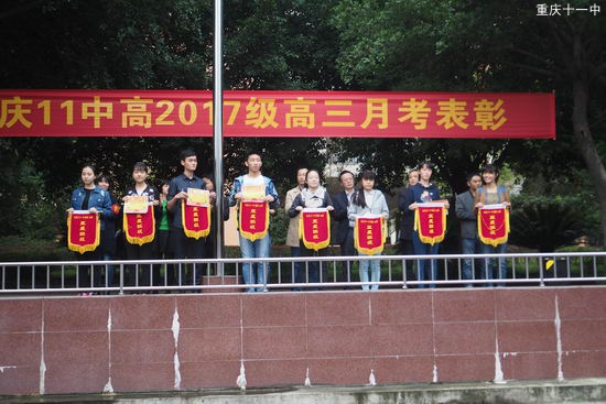 2016年10月18日上午7点50分,高2017级10月月考表彰大会在重庆十一中CBD校区成功举行。年级主任艾林、年级组长马凯、刘世军以及高2017级年级领导小组全体成员出席大会,高2017级全体师生参加此次表彰大会。此次表彰大会共分两个部分举行。首先,由年级领导小组成员为在10月份评为“五星班级”的集体颁奖和授旗。此次获得“五星班级”的有2班、5班、8班、9班、11班、17班、18班、20班,共8个班级。“五星班级”评选活动在促进高三年级良性发展,加强各班精细化管理,培养学生集体意识和集体荣誉等方面发挥了重要作用。