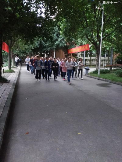 20161026日,重庆十一中学校cbd校区高三学子们晨练跑出一道亮丽的风景线,为自己的高三留下脚印,为自己的梦想增添色彩。