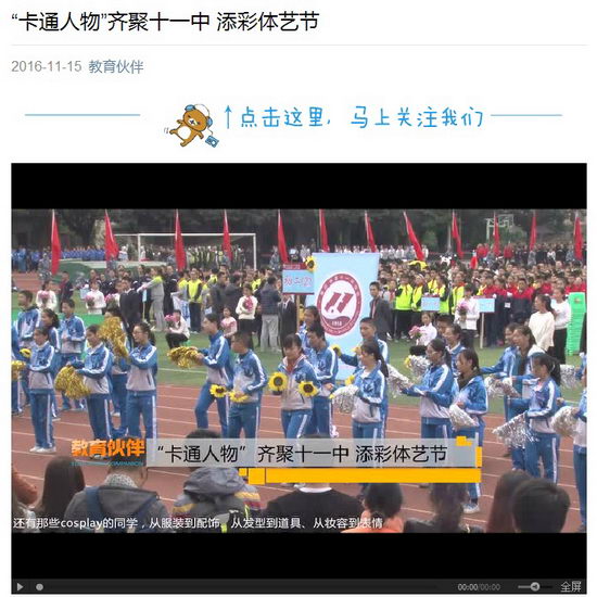11月10号下午,重庆第十一中学校第十二届体艺节开幕,3600余名学生自编自演自导,身着各种造型服装,现场展示了班级特色与创意。