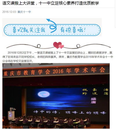 [重庆十一中 微信] 语文课搬上大讲堂,十一中立足核心素养打造优质教学