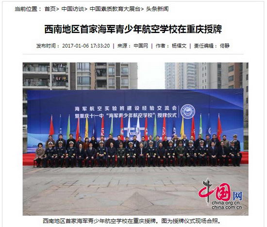 [中国网] 西南地区首家海军青少年航空学校在重庆授牌