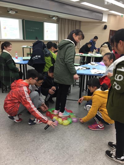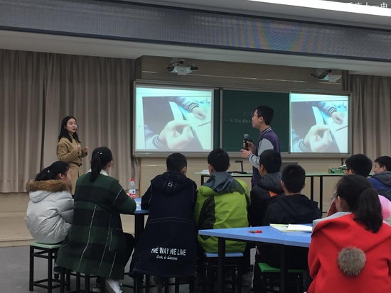 教研活动分为两部分。首先是由来自11中和38中的两位老师进行同课异构,执教课题为《压力的作用效果》第二课时,我校由初三年级陈怡老师上课,陈怡老师由一张A4纸能否切断木头引发学生思考,从而进入课堂,接下来让学生进行两轮挑战,用老师给定器材看谁切的黄瓜又快又薄,同时另外几组学生挑战气球载人实验,激发学生思考如何增大和减小压强。在压强计算环节,例题设计巧妙,三个例题紧紧围绕学生所做的气球载人实验原创题目。整节课设计新颖,实验效果明显。来自38中的陈学响老师上课富有激情,由教材中的例题进入课题,让学生计算大象对地面和图钉的墙面产生的压强,引出增大和减小压强的方法。引导解决实际生活的一些现象,锤砸核桃、刀切苹果,巧背重物。整节课注重细节,对教材的分析到位。