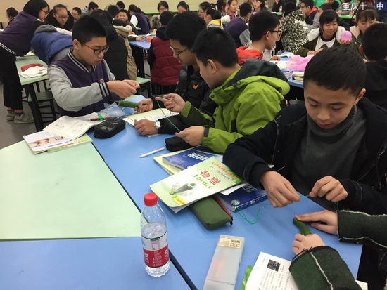 活动第二部分由南岸区初中物理中心组成员、鸡弹片区片长赖德东主持,赖老师对精心准备上课的两位老师表示感谢,并对两节课进行了点评。他说:“从整体来看,两节课在内容与设计上起点高容量大,有厚度,让人耳目一新,实验设计巧妙,引人入胜;从课堂来看,学生活动充分,方法指导实在,尽管练习设计有难度,但教师及时地为学生搭好了台阶;本课作为一节教研课,真正体现了“以学生为本,立足于学”的理念。他认为这次教研活动内容扎实,同伴合作有力,整体质量水平都比较高,对促进教学提高很有帮助。”接下来四个学校的备课组长对两节课进行了点评,并结合两位老师的上课效果,投票决定由11中陈怡老师代表鸡弹片区参加2017年南岸区初中物理优质课大赛。