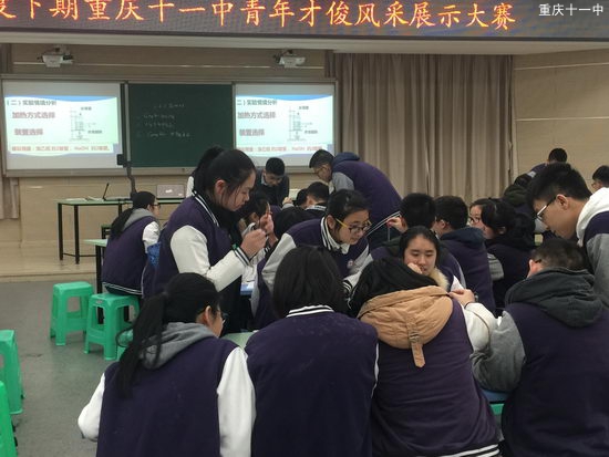 2017年3月13日星期一, 重庆第十一中学青年才俊风采展示大赛拉开了序幕。高2018级化学组石天翔老师在修德楼多媒体教室一展示了一堂“先学后教,以学定教”模式下的《卤代烃》的公开课。