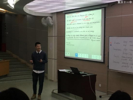 2017年3月16日上午,在重庆十一中青年才俊教师公开课大赛高中英语组的比赛在体育馆阶梯教室进行,田地老师的公开课安排在第三节。