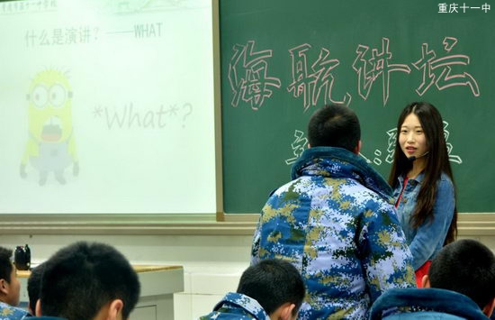 2017年3月26日晚,重庆第十一中学校2019级海军航空实验班迎来了下半学年首次海航讲坛。在班主任老师、家长和学生们的共同努力下,由张盈老师主讲的“抑扬顿挫鞭辟入里,纵横捭阖舌灿莲花”主题演讲取得圆满成功。