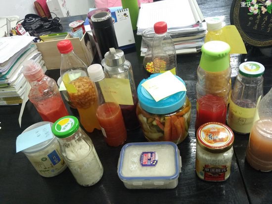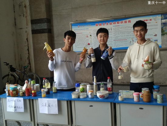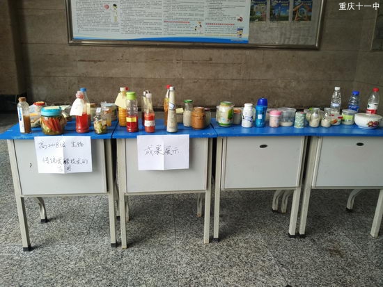近日高2018级的同学们就将自己学到的关于传统发酵技术的应用真正的时间了一次。同学们都带来了自己的作品来展示。有用苹果葡萄橘子来制作果酒果醋的。也有用胡萝卜青菜白菜来制作泡菜的。更有人做酒糟的。全部都色香味俱全,看着同学们做的泡菜很有胃口啊!作品在博文楼一楼的大厅展示,好奇的同学们都来围观,也想自己动手做做。其实这很简单,只要利用不同微生物的发酵作用就能制作食品了。
