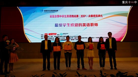 最后是对最受欢迎的老师的颁奖环节,我校共五位老师参与该赛,周凡奇老师不负众望,勇夺冠军。周凡奇老师是一位把工作当作终身事业的人,对于教育的奉献、对于教育的执着,是周老师一生的追求!2016年10月13日,周老师要代表英语备课组要在全区英语老师面前上一堂骨干教师示范课。国庆七天,她把自己关在家里认真备课,只为了打磨一堂更精彩的课,展现十一中教师的名师风范,周老师因为国庆期间长期熬夜,导致身体不适,而后几天终于病倒了!最终,周老师的示范课大获成功,她的教学设计得到了重庆市英语教研员伍江文老师的高度评价。还有2015年写出初一至初三6本《英语能力训练》的时候,在寒暑假、周末周老师几乎每天早上七点到办公室,工作到十二点;下午两点到晚上十一点。每天长达十几个小时的工作,她创造了生命的奇迹。2016年六月她开始组建了双星辉映工作室,邀约了十一中一大批志同道合的小伙伴一起创作了《双星辉映》,进行中学生语言素养的研究。对待身边的同事,周老师总是给予他们长者的关怀和智者的引导,特别是一大批青年教师,在周老师的关心帮助下很快成长起来,周老师也因此成为大家口中的知心姐姐。她是美的化身,用大爱演绎了十一中舞台上一场场精彩纷呈的动人故事,诠释了十一中教师的良好师德和人文情怀。周老师此次夺冠可谓是实至名归。