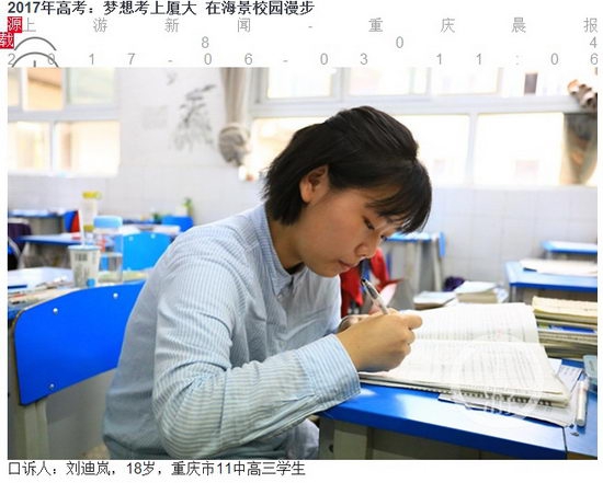 口诉人:刘迪岚,18岁,重庆市11中高三学生