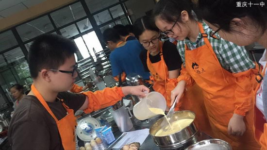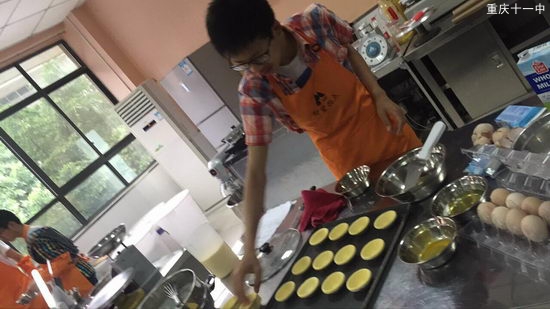 老师将全班分为两个队,一对先进行茶艺体验,另一队先上烘焙课。