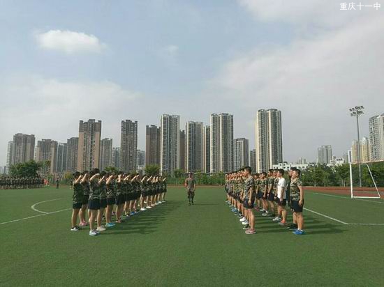 2017年9月7日,迎着清晨的第一缕阳光,重庆市第十一中学2020级新生军训正式拉开帷幕。同学们听从老师和教官的指挥,整齐有序的乘车前往国防基地。同学们统一身着鲜艳的迷彩服,怀着激动和兴奋的心情来到军训场地。他们以最饱满的热情和最昂扬的面貌全身心地投入到艰苦而又充实的军训中,用微笑和自信迎接踏入学校的第一堂必修课。