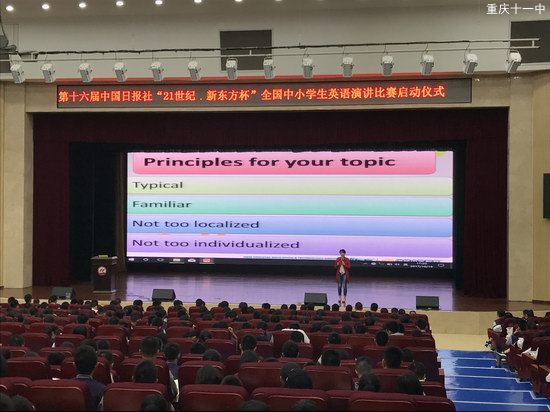 2017年10月16日,由中国日报社和新东方教育科技集团主办,二十一世纪英语教育传媒承办的第十六届中国日报社“21世纪·新东方杯”全国中学生英语演讲比赛在第十一中学校文益堂正式拉开帷幕。