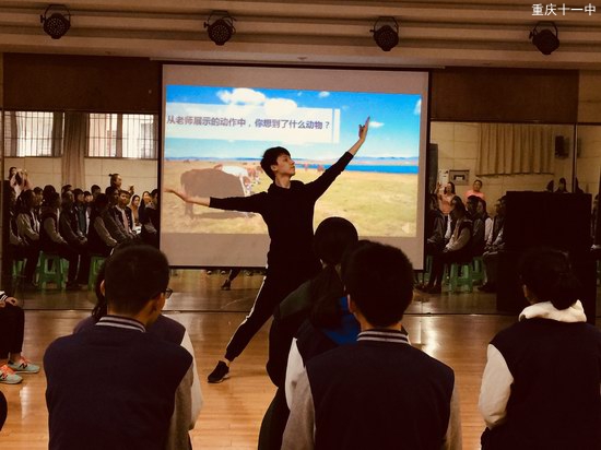 接着来自十一中学(南岸区音乐教师优质课大赛一等奖获奖者)刘方家老师带来了一节高中舞蹈选修课《独特的民族风》。扎实的基本功优美的舞蹈动作,给人以美的享受,同学们学会了蒙古族的舞蹈勒马手、扬鞭手,最后同学们在愉快的创编活动中结束本堂课。