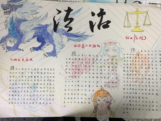 据了解,此次年级22个班共推荐作品86份,年级党小组最后评比出特等奖3名,一等奖5名,二等奖8名。在年级范围内张榜公示并颁发奖状,这也标志着本次“以笔书“法”,以手绘法”法治主题书画作品比赛活动圆满落幕。