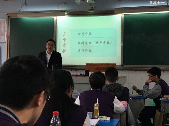 2017年11月6日,重庆市第11中学校高一高二同课异构学习活动在11中学校圆满完成。余文江老师、季婕老师各自呈现了一堂精彩的示范课,课题为《盐类水解的应用——三大守恒》,杨洪、邹玉兰、周晓宏、胡在兰、马骥等老师听课学习,此次活动的目的是促进高一高二老师们的交流学习。第一节课为季婕老师上课,季老师亲切的语言、严格的逻辑,循序渐进,循循善诱,赢得了听课老师和学生们的一度赞扬。第二节课为余文江老师上课,余老师风趣的语言、幽默的动作、娓娓道来的方式,让人听起来轻松却又易于理解,令人折服。课后老师们交流了心得体会,同时互相指点评价,共同提升。