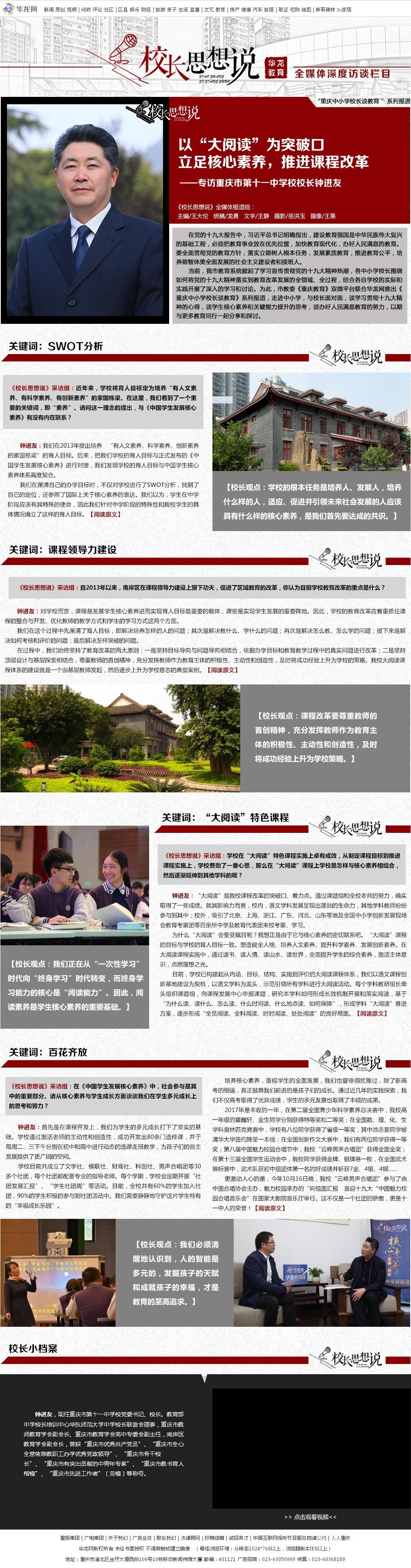 [华龙网]《校长思想说》专访重庆市第十一中学校校长钟进友