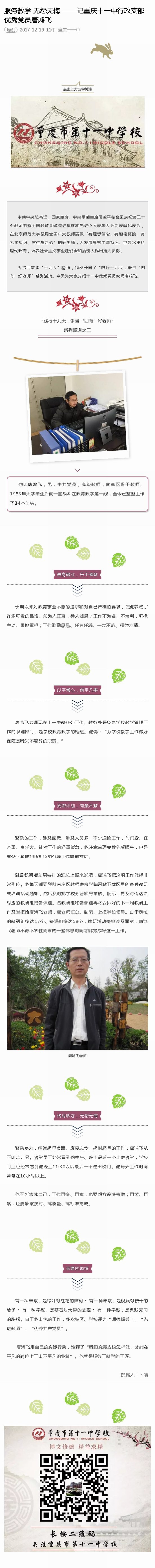 [重庆11中官方微信]服务教学 无怨无悔 ——记重庆十一中行政支部优秀党员唐鸿飞